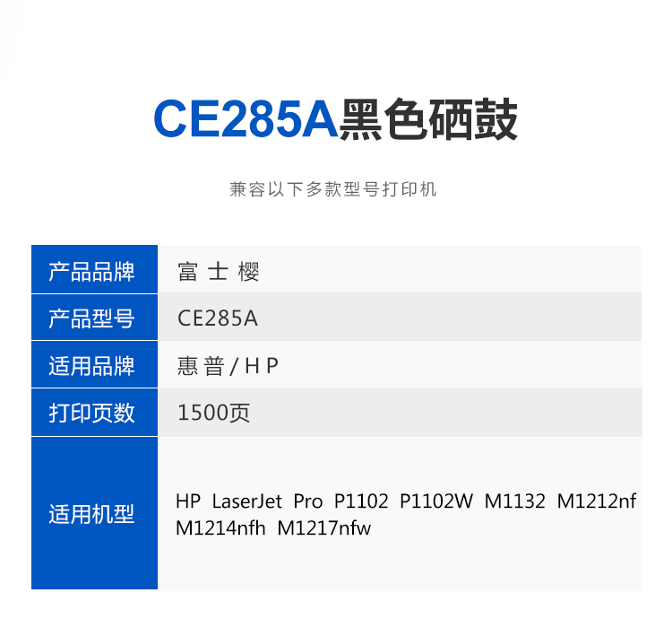 富士樱 CE285A 黑色硒鼓 85A适用惠普HP P1102 P1102w M1130 M1132 M1212nf M1214nfh M1217nfw打印机墨粉盒