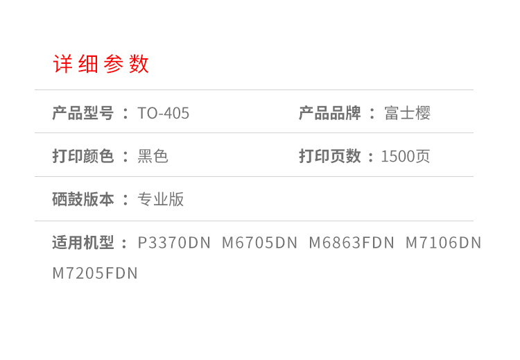 富士樱 TO-405 黑色粉盒适用 奔图 P3370DN M6705DN M6863FDN M7106DN M7205FDN 硒鼓/墨粉/墨粉盒