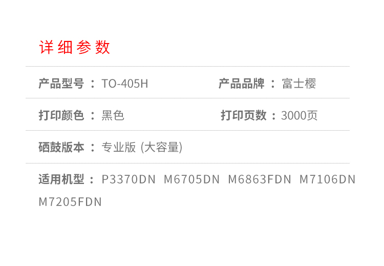 富士樱 TO-405H 黑色粉盒适用 奔图 P3370DN M6705DN M6863FDN M7106DN M7205FDN 硒鼓/墨粉/墨粉盒