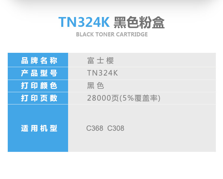 富士樱 TN324 彩色大容量墨粉盒(适用柯美Bizhub C368 C308)柯尼卡美能达碳粉G052打印机墨粉盒